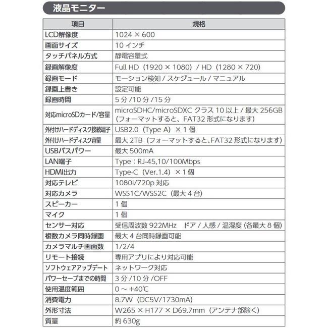 | SDカード録画 | ○ | SDカードスロット | microSDHC/microSDXCカード |