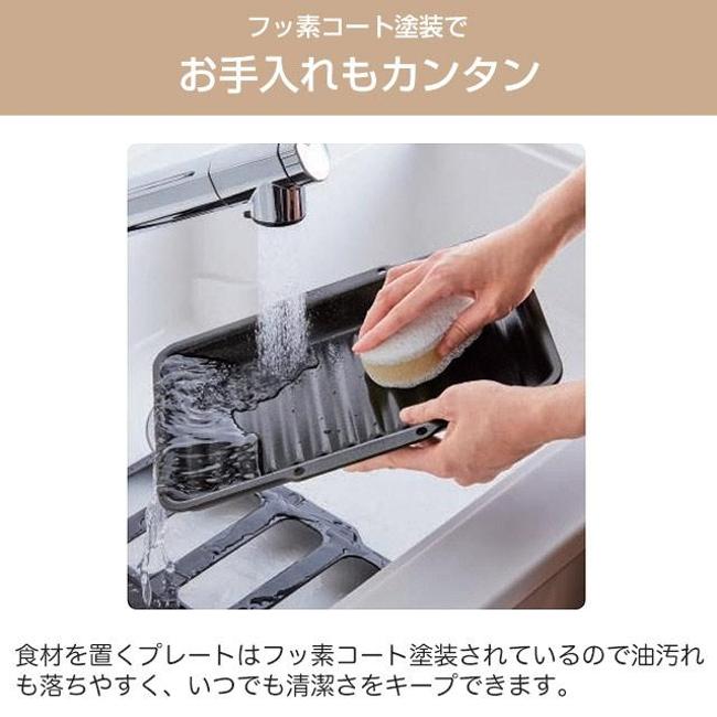 プレート本体とカバーを合わせて使用することで油はねを軽減し、グリル庫内をキレイに保ちます。