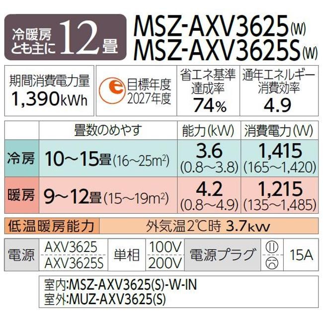 冷房(鉄筋洋室目安)*115畳冷房能力3.6kW
