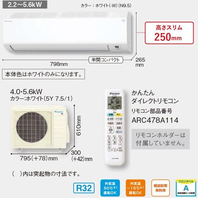 室内機サイズ幅798x高さ250x奥行265mm室外機サイズ幅795(+78)x高さ610x奥行300(+42)mm