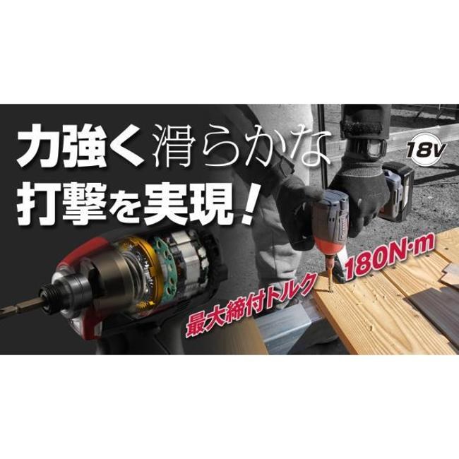 | タイプ | インパクトドライバー | 最大締め付けトルク | 180 N・m |