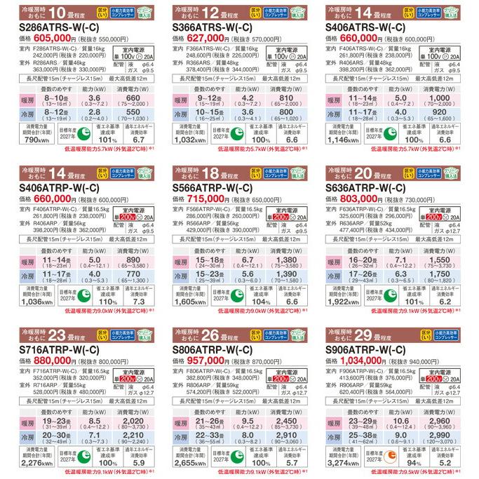 冷房(鉄筋洋室目安)*117畳冷房能力4kW