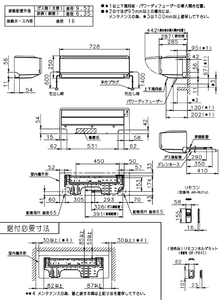 標準工事内容は商品梱包の開梱、取り付け工事、被覆銅管、ドレンホースとも4mまで材料込みとなっております。