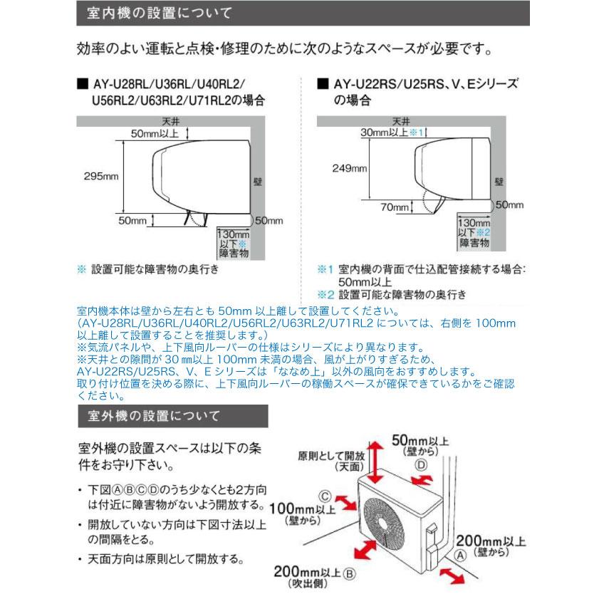 | 室内機サイズ | 幅798x高さ295x奥行387mm | 室外機サイズ | 幅800(+配管カバー部65)x高さ630x奥行300(脚含345)mm |