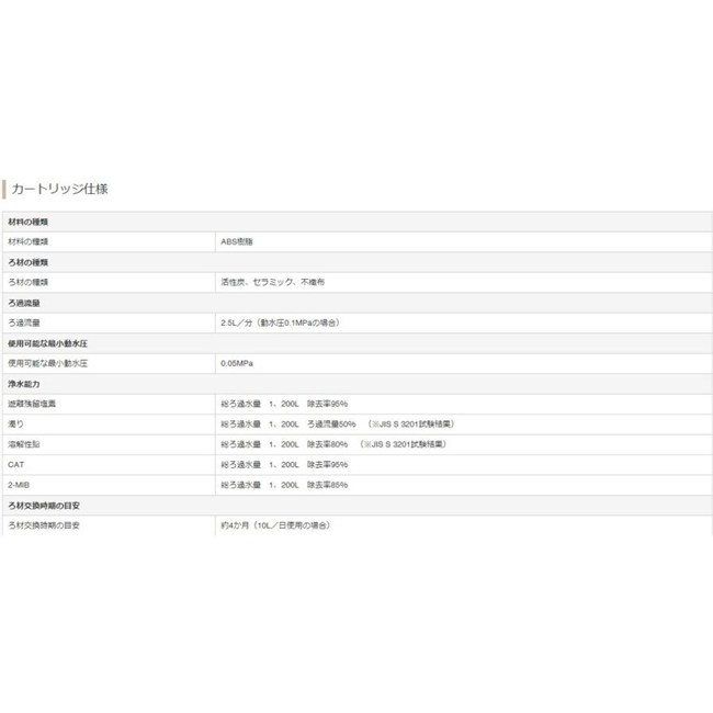 ・従来品(JF20TK)では80%だった遊離残留塩素(カルキ臭)の除去率が95%。また、赤サビ等の除去性能の判断項目「濁り」試験にも合格しています。