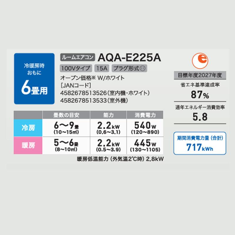 | 期間消費電力量 | 717kWh(JIS C 9612:2013) | 年間電気代 | 19359 円 |
