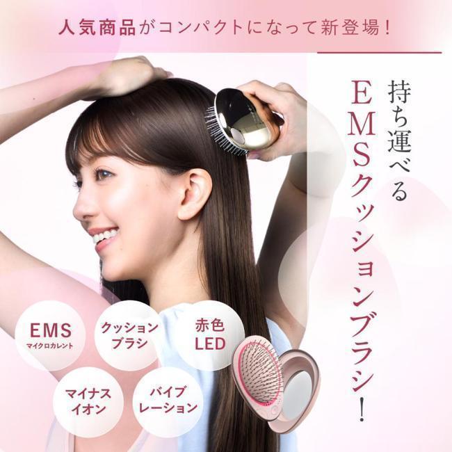 【商品解説】 ブラシエアーミニ。 手のひらサイズでバッグなどにも丁度よく収まり、持ち運びにも便利 バイブレーション(振動)を追加することにより、従来のEMS・赤色LED・マイナスイオン機能の浸透性を高めるとともに、頭皮のめぐりをやさしくサポート 【スペック】 ●型式:WH51-03-GD(WH5103GD) 仕様1:EMS搭載 仕様2:バイブレーション搭載 仕様3:マイナスイオン搭載