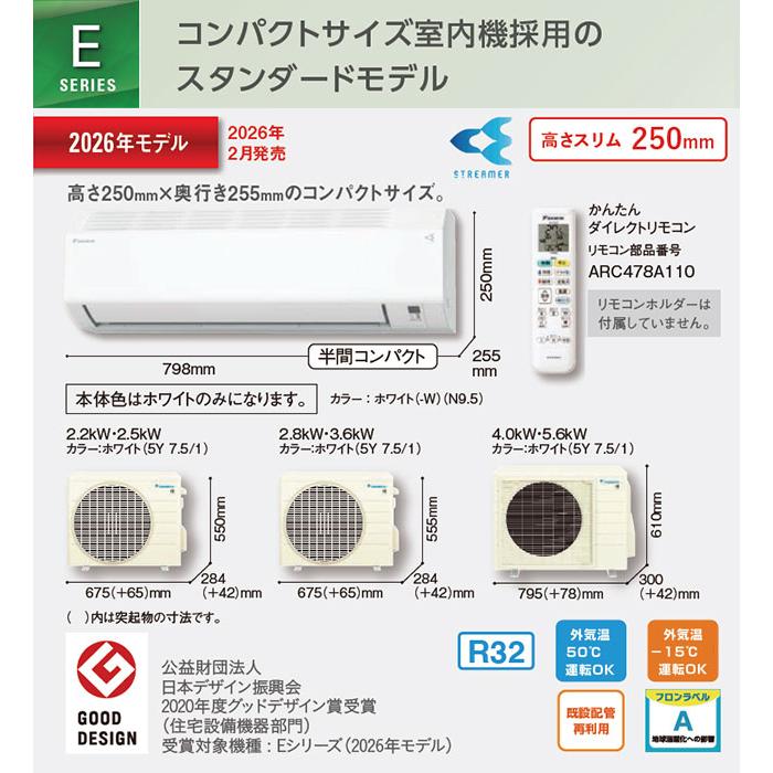 | 室内機サイズ | 幅798x高さ250x奥行255mm | 室外機サイズ | 幅795(+78)x高さ610x奥行300(+42)mm ()内は突起物の寸法です。 |